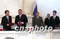 中俄在莫斯科發(fā)表總理第六次定期會晤聯(lián)合公報 2001年09月11日 19:30 ![]() 中國總理朱镕基與俄總理卡西亞諾夫九月八日在圣彼得堡簽署總理會晤聯(lián)合公報后互致祝賀。雙方于十一日在俄首都莫斯科發(fā)表了該聯(lián)合公報。中新社記者 孟慶雷 攝