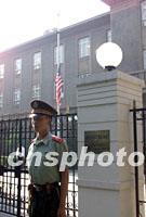組圖:美國駐中國大使館降半旗表示哀悼 2001年09月12日 10:43 ![]() 美國駐中國大使館十二日清晨降半旗,對在美國紐約與華盛頓恐怖事件中的罹難者表示哀悼。中新社記者 毛建軍 攝 ![]() 美國駐中國大使館十二日清晨降半旗,對在美國紐約與華盛頓恐怖事件中的罹難者表示哀悼。中新社記者 毛建軍 攝