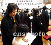 圖文:香港佛聯(lián)舉行法會超度“九一一”罹難者 2001年09月16日 01:09 ![]() 香港佛教聯(lián)合會15日下午為美國「九一一事件」罹難者舉辦的超度法會上,一對母子一起誦讀《心經(jīng)》,祈祝世界和平。中新社圖 董會峰 攝