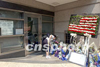 圖:美國駐香港總領(lǐng)事館門前獻(xiàn)花人不斷 2001年09月17日 17:40 ![]() 美國紐約世貿(mào)中心受攻擊后,每天都有人到美國駐香港總領(lǐng)事館獻(xiàn)花悼念遇難者。9月17日美國駐香港總領(lǐng)事館再度關(guān)閉,但依然不時有人在緊閉的大門外獻(xiàn)上寄托哀思的鮮花。中新社傳真 任晨鳴 攝 |