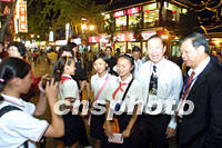 圖:少先隊員和華商在夫子廟合影 2001年09月17日 22:47 ![]() 第六屆華商大會代表十七日晚游覽南京著名風(fēng)景區(qū)夫子廟,南京的少先隊員好奇地與代表們攀談并合影。中新社記者 李剛 攝 |