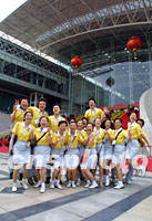 圖:志愿者即將謝幕華商大會 2001年09月19日 11:38 ![]() 為期三天的第六屆世界華商大會十九日將在南京謝幕時,忙碌了數(shù)天的志愿者抽空在主會場前合影留念。中新社記者 鄭萍萍 攝 |