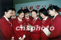 圖:上海航空公司乘務(wù)員學(xué)英語(yǔ)迎APEC 2001年09月26日 10:12 ![]() 上海航空公司乘務(wù)部把迎APEC會(huì)議英語(yǔ)100句列入日常服務(wù)英語(yǔ)訓(xùn)練之中,以充實(shí)服務(wù)英語(yǔ)的內(nèi)容,提高空中服務(wù)人員的口語(yǔ)水平。圖為航班準(zhǔn)備前空隙,乘務(wù)員在閱讀交流。中新社圖 夏本建 攝 |