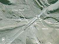 圖文:美國衛(wèi)星照片公開拉登在阿富汗訓練營地 2001年09月27日 16:54 衛(wèi)星照片示意地圖 營地內(nèi)的秘密隧道入口 所指處懷疑為營地內(nèi)直升機停機坪 塔利班控制區(qū)的訓練營地 訓練營地內(nèi)的隊員在行軍 中新網(wǎng)香港9月27日消息:美國非政府組織一家軍事網(wǎng)站,公開間諜衛(wèi)星所拍攝到的多張照片,顯示了本·拉登在阿富汗的訓練營地。 這些營地就在阿富汗東部城市賈拉拉巴德附近的達倫特地區(qū),照片清楚顯示恐怖分子的營地及掩護體,甚至有直升機起落坪。 |