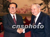 江澤民:中國加入世貿(mào)組織有利于中美經(jīng)貿(mào)合作 2001年09月28日 21:09 ![]() 中國國家主席江澤民二十八日在北京中南海會見美國銀行家洛克菲勒先生。中新社記者 毛建軍 攝