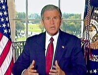 圖:布什發(fā)表講話宣布對(duì)阿富汗發(fā)動(dòng)軍事進(jìn)攻 2001年10月08日 10:45 ![]() 北京時(shí)間八日凌晨一時(shí)左右,美國(guó)總統(tǒng)布什在白宮官邸發(fā)表電視講話,宣布美國(guó)和英國(guó)已經(jīng)開(kāi)始對(duì)阿富汗塔利班當(dāng)局軍事目標(biāo)和伊斯蘭極端主義份子拉登的卡達(dá)訓(xùn)練營(yíng)進(jìn)行軍事打擊。 |