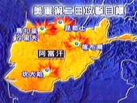 圖文:美英聯(lián)軍對阿富汗目標(biāo)實(shí)施第二輪空中打擊 2001年10月09日 00:33 ![]() 阿富汗當(dāng)?shù)貢r(shí)間八日二十時(shí)二十八分左右,美英開始對阿富汗進(jìn)行新一輪打擊,圖為美英新二輪打擊目標(biāo)的示意圖。 ![]() 阿富汗當(dāng)?shù)貢r(shí)間八日二十時(shí)二十八分左右,美英開始對阿富汗進(jìn)行新一輪打擊,圖為導(dǎo)彈擊中目標(biāo)的場面。