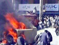 圖:巴反美示威演變成騷亂 2001年10月09日 10:36 ![]() 美英八日開始對阿富汗進(jìn)行軍事打擊后,巴基斯坦爆發(fā)了大規(guī)模的示威游行,并演變?yōu)轵}亂。憤怒的民眾襲擊了聯(lián)合國兒童基金會和聯(lián)合國難民署駐當(dāng)?shù)氐慕ㄖ铩?/p> |