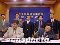 從南極到北極:鳳凰、央視首次攜手看世界(附圖) 2001年10月13日 16:25 ![]() 鳳凰衛(wèi)視和中國(guó)中央電視臺(tái)將首次聯(lián)手,完成這次從南到北的"極地大跨越"。圖為鳳凰衛(wèi)視節(jié)目副總裁鐘大年、中視傳媒股份有限公司董事長(zhǎng)吳達(dá)審分別代表雙方在合約上簽字。