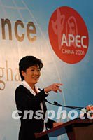 圖:章啟月就APEC會(huì)議總體安排問題答記者問 2001年10月14日 12:16 ![]() 2001年APEC會(huì)議中國(guó)籌委會(huì)秘書處發(fā)言人章啟月,十四日在新聞中心就2001年APEC會(huì)議總體安排問題舉行新聞發(fā)布會(huì),回答中外記者提問。中新社記者 王瑤 攝 |