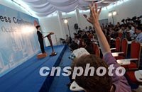 圖:中外記者聚焦上海APEC 2001年10月14日 15:19 ![]() 2001年上海APEC會(huì)議中國(guó)籌委會(huì)秘書(shū)處發(fā)言人章啟月,十四日在新聞中心就2001年APEC會(huì)議總體安排問(wèn)題舉行新聞發(fā)布會(huì),中外記者就大會(huì)議題、安全保衛(wèi)等問(wèn)題踴躍提問(wèn)。中新社記者 王瑤 攝 |