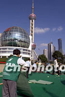 圖:上海國際會(huì)議中心外鋪設(shè)地毯迎接各國貴賓 2001年10月14日 19:10 ![]() 工作人員十四日在上海國際會(huì)議中心外鋪設(shè)地毯,迎接將于十五日開始舉行的亞太經(jīng)合組織高官會(huì)等APEC重要會(huì)議。中新社記者 毛建軍 攝 |