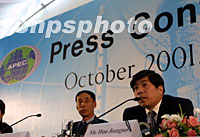 圖:秦曉、霍建國認為APEC作用重要 2001年10月15日 22:06 ![]() APEC工商咨詢理事會主席秦曉(左)、秘書長霍建國十五日在上海APEC新聞發(fā)布會上表示,APEC對當前世界前沿問題進行探討并達成共識具有重要作用。中新社記者 潘索菲 攝 |