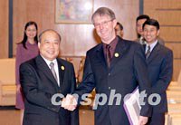 圖:石廣生會見新西蘭貿易談判部長 2001年10月16日 16:36 ![]() 中國對外經(jīng)濟貿易合作部長石廣生(左)十六日在上海國際會議中心會見前來參加亞太經(jīng)合組織(APEC)會議的新西蘭貿易談判部長吉姆·薩頓。中新社記者 毛建軍 攝 |