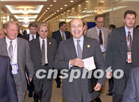圖:俄羅斯外長(zhǎng)出席APEC雙部長(zhǎng)會(huì)議 2001年10月17日 14:03 ![]() 俄羅斯外交部長(zhǎng)伊戈?duì)?#183;伊萬(wàn)諾夫十七日在上海國(guó)際會(huì)議中心出席亞太經(jīng)合組織(APEC)雙部長(zhǎng)會(huì)議。中新社記者 毛建軍 攝 |