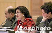 圖:拉菲達(dá)在亞太經(jīng)合組織部長級會議上發(fā)言 2001年10月17日 18:45 ![]() 10月17日,2001年亞太經(jīng)合組織(APEC)部長級會議在上海國際會議中心開幕。這是馬來西亞貿(mào)工部長拉菲達(dá)·阿齊茲在會上發(fā)言。中新社圖 |