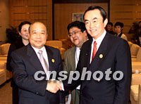 石廣生與日經(jīng)濟(jì)大臣就中日貿(mào)易糾紛交換意見 2001年10月17日 23:35 ![]() 中國對外經(jīng)濟(jì)貿(mào)易合作部長石廣生十七日在上海國際會議中心會見前來參加2001年亞太經(jīng)合組織(APEC)會議的日本經(jīng)濟(jì)產(chǎn)業(yè)大臣平沼赳夫。中新社記者 毛建軍 攝