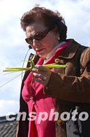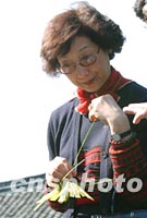 ![]() 出席APEC雙部長會議的部長夫人們十八日到千年水鄉(xiāng)古鎮(zhèn)朱家角游覽,菲律賓副總統(tǒng)兼外長夫人Mme. Ruth de Lara Guingona拿著當(dāng)?shù)匕傩召浰偷牟菥幭X蟈工藝品觀賞古鎮(zhèn)風(fēng)光。中新社記者 王瑤 攝 |