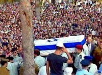 中新網(wǎng)北京10月19日消息:耶路撒冷訊,以色列18日為遇刺死亡的旅游部長雷哈瓦姆·澤維舉行國葬。 國葬儀式于當(dāng)日下午在以色列議會廣場舉行。以總統(tǒng)卡察夫、總理沙龍、議長伯格、澤維家屬以及社會各界人士約數(shù)百人到場與澤維的遺體告別,悼念這位以政壇極右翼勢力的強(qiáng)硬代表。 據(jù)新華網(wǎng)的消息,澤維的靈柩將被安葬在耶路撒冷赫爾茨山公墓。 17日上午,澤維在東耶路撒冷附近下榻飯店遭解放巴勒斯坦人民陣線武裝人員襲擊,因傷勢過重醫(yī)治無效死亡。 相關(guān)報道:巴勒斯坦逮捕涉嫌暗殺以部長澤維的部分官員 相關(guān)報道:阿拉法特譴責(zé)暗殺以部長行為 下令緝拿兇手 相關(guān)報道:沙龍在以色列部長被殺后稱:一切都已改變 |