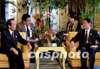 圖:日本經(jīng)濟(jì)產(chǎn)業(yè)大臣平沼赳夫贊揚(yáng)中國(guó)APEC 2001年10月19日 12:03 ![]() 中國(guó)國(guó)家經(jīng)貿(mào)委主任李榮融(右)十九日在上海會(huì)見日本經(jīng)濟(jì)產(chǎn)業(yè)大臣平沼赳夫(左),平沼赳夫先生對(duì)此次APEC表示贊賞。中新社記者 潘索菲 攝 |