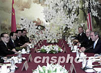 組圖:江澤民主席會(huì)見美國(guó)總統(tǒng)布什 2001年10月19日 13:40 ![]() 10月19日,國(guó)家主席江澤民在上海西郊賓館會(huì)見美國(guó)總統(tǒng)布什。中新社圖 ![]() 10月19日,中國(guó)國(guó)家主席江澤民在上海與美國(guó)總統(tǒng)布什舉行會(huì)談。中新社圖