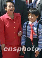 ![]() 菲律賓總統阿羅約(左)十九日中午到達上海浦東機場,她將參加二十一日的APEC領導人非正式會議。中新社圖 劉殊瑾 攝