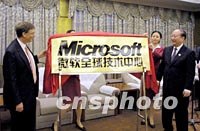 ![]() 十月十八日上海市市長(zhǎng)徐匡迪與微軟公司主席比爾·蓋茨為新成立的微軟全球技術(shù)中心揭牌。同時(shí),上海市政府與微軟公司還舉行“共同促進(jìn)上海軟件產(chǎn)業(yè)發(fā)展諒解備忘錄”簽字儀式。中新社記者 潘索菲 攝