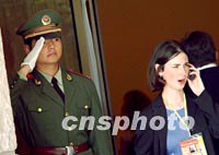圖:中國(guó)軍警與美國(guó)女記者 2001年10月19日 16:09 ![]() 十月十九日,在上海中美首腦會(huì)談場(chǎng)外,一名美國(guó)白宮女記者忙于打手機(jī)電話,身邊的中國(guó)軍警正在向來(lái)賓行軍禮。中新社記者 賈國(guó)榮 攝 |