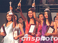 組圖:中國模特之星大賽決出冠、亞、季軍 2001年10月19日 18:43 ![]() “沙溪休閑”杯中國模特之星大賽在廣東中山市舉行,中國各省市的59名佳麗參加了角逐,上海選手唐雪萍(中)獲得大賽冠軍、陜西選手曾愛琳(右)獲亞軍、大連的郝麗娜獲季軍(左)。中新社圖 東方 攝 ![]() 2001中國模特之星大賽日前在廣東中山市舉行,選自中國各省市的59名佳麗參加了角逐。圖為參賽選手進行泳裝展示。中新社圖 東方 攝