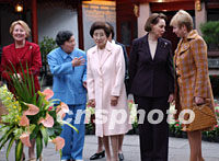 圖:APEC領導人的夫人游豫園 2001年10月20日 19:54 ![]() 出席APEC會議的經(jīng)濟體領導人配偶二十日在上海豫園游覽,中國國家主席江澤民夫人王冶坪(左二)與澳大利亞霍華德總理夫人珍妮特·霍華德(左一)、韓國總統(tǒng)金大中夫人李姬鎬,加拿大克蕾蒂安總理夫人艾琳·克蕾蒂安和俄羅斯總統(tǒng)普京夫人柳德米拉·普京(左至右)等在一起合影留念。中新社記者 王瑤 攝 |