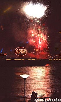 圖:上海浦江APEC煙火之夜 2001年10月20日 23:02 ![]() 上海APEC峰會(huì)之夜煙火如花。中新社記者 賈國(guó)榮 攝