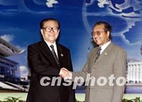 圖:江澤民迎接馬來西亞總理 2001年10月21日 11:36 ![]() 10月20日,中國(guó)國(guó)家主席江澤民在上海國(guó)際會(huì)議中心迎接馬來西亞總理馬哈蒂爾。中新社圖 |