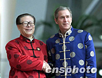 圖:江澤民在上海科技館迎接布什 2001年10月21日 17:25 ![]() 10月21日,中國(guó)國(guó)家主席江澤民在上?萍拣^迎接美國(guó)總統(tǒng)布什。亞太經(jīng)合組織第九次領(lǐng)導(dǎo)人非正式會(huì)議在這里舉行。中新社圖 |