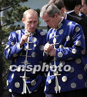 圖:普京與布什交談 2001年10月21日 22:32 ![]() 10月21日,出席亞太經(jīng)合組織領(lǐng)導(dǎo)人非正式會(huì)議的俄羅斯總統(tǒng)普京和美國(guó)總統(tǒng)布什在會(huì)議間隙交談。中新社圖 |