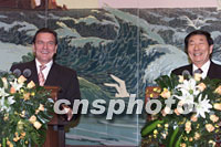 ![]() 國務院總理朱镕基與德國總理施羅德三十一日在北京共同會見記者并回答記者提問。中新社記者 滿會喬 攝