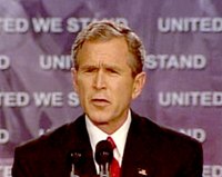 布什發(fā)表演講 呼吁美國民眾恢復(fù)正常生活 2001年11月09日 18:31 ![]() 布什8日在亞特蘭大發(fā)表全國講話說,一個(gè)四歲的小女孩曾寫信問他:"那些人都不知道我們是誰就攻擊我們。我們干嘛不告訴他們我們叫什么呢?"布什接著說:"我們會(huì)告訴那些恐怖分子我們是誰的,我們會(huì)告訴他們美國是誰。"布什的講話引來在場五千名聽眾起立鼓掌。
