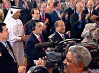 卡塔爾特寫:中國入世,一次空前的"盛宴"(附圖) 2001年11月11日 18:46 ![]() 第四屆WTO部長會議十日晚在卡塔爾首都多哈舉行會議正式通過中國入世。圖為會議主席臺。中新社記者 錢興強 攝 ![]() 卡塔爾財政、經(jīng)濟和貿(mào)易大臣Youssef Hussain Kamal先生在多哈一槌落下宣布通過中國加入WTO時,多哈WTO第四次部長級會議的全體代表鼓掌向中國代表團表示祝賀。