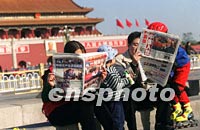 圖:北京市民關(guān)注中國(guó)入世 2001年11月11日 19:51 ![]() 十一日是中國(guó)入世的第一天。在天安門廣場(chǎng)上游玩的一家人仔細(xì)閱讀當(dāng)日?qǐng)?bào)紙關(guān)于WTO的相關(guān)新聞。中新社記者 史利 攝 |