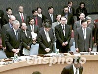 圖:聯(lián)合國安理會向紐約墜機死難者致哀 2001年11月13日 10:01 ![]() 美東時間十二日上午,聯(lián)合國安理會召開反恐外長會議。會議開始時,安理會全體起立默哀一分鐘,為當日上午紐約肯尼迪機場飛機墜毀事件中的遇難者表示深切哀悼。中新社記者 陳建 攝 |