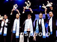 ![]() 夏蒙2001世界男模大賽十二日晚在北京保利劇院落下帷幕,包括冠亞軍在內(nèi)的十七個(gè)獎(jiǎng)項(xiàng)各有其主。圖為獲得本屆男模大賽前五名的選手。從左至右依次為委內(nèi)瑞拉(季軍)、中國(亞軍)、印度(冠軍)、克羅地亞(第四名)和開曼群島(第五名)選手。中新社圖