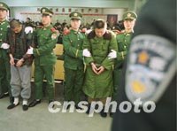 圖:北京警方公開處理犯罪嫌疑人 2001年12月05日 14:22 ![]() 北京警方日前公開處理一批危害社會治安的犯罪嫌疑人,以嚴厲打擊犯罪分子的囂張氣焰,教育市民提高自我保護意識。中新社記者 宋吉河 攝 |
