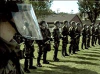 圖:鹽湖城國民自衛(wèi)隊員準備進行防暴演習 2002年02月08日 17:23 ![]() 負責第十九屆鹽湖城冬奧會的保安人員由警察、國民自衛(wèi)隊員和特種兵等組成,總計一萬五千人,平均每個參賽運動員有六個“保鏢”。除例行巡邏外,國民自衛(wèi)隊員們也常帶著防暴頭盔、手持警棍進行防暴演習。
