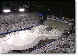 圖文:第十九屆冬奧會(huì)如期在美國(guó)鹽湖城開(kāi)幕 2002年02月09日 10:29 ![]() 冬奧會(huì)開(kāi)幕式俯瞰 中新網(wǎng)北京2月9日消息:盡管剛剛經(jīng)過(guò)一場(chǎng)大雪,氣候惡劣,但第19屆冬奧會(huì)還是如期于當(dāng)?shù)貢r(shí)間周五晚間9時(shí)(北京時(shí)間今天上午10時(shí))在美國(guó)猶他州鹽湖城如期舉行。 美國(guó)總統(tǒng)布什和國(guó)際奧委會(huì)主席羅格出席在鹽湖城萊斯-?藸査箠W林匹克運(yùn)動(dòng)場(chǎng)舉行的開(kāi)幕式。布什莊嚴(yán)宣布說(shuō):“我宣布鹽湖城運(yùn)動(dòng)會(huì)召開(kāi)。我宣布冬奧會(huì)開(kāi)幕”。 剛剛在紐約世貿(mào)廢墟中挖掘出的殘損美國(guó)國(guó)旗在萊斯-?藸査箠W林匹克運(yùn)動(dòng)場(chǎng)冉冉升起。人們的歡聲笑聲連成一片。