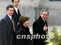 圖:布什訪問北京信心十足 2002年02月21日 16:38 ![]() 美國總統(tǒng)布什二十一日抵達(dá)北京首都國際機(jī)場時,向迎接的人們豎起拇指。中新社記者 毛建軍 攝