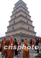 圖:兩岸佛教人士參觀大雁塔 2002年02月22日 13:52 ![]() 在西安參加法門寺佛指舍利赴臺(tái)灣地區(qū)瞻禮(供奉)活動(dòng)的兩岸佛教人士,二十二日上午來(lái)到西安大雁塔參觀。中新社記者 錢興強(qiáng) 攝