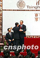 組圖:布什在清華演講 2002年02月22日 14:12 ![]() 訪華的美國總統(tǒng)布什二十二日在北京清華大學發(fā)表演講。中新社記者 賈國榮 攝 ![]() 美國總統(tǒng)布什二十二日在北京清華大學發(fā)表演講后下臺時,踩在臺階上身體搖晃了一下,他馬上和校長張開雙臂好似保護動作般開玩笑。中新社記者 賈國榮 攝