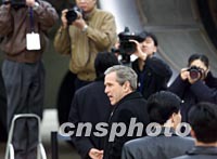 圖:中外記者聚焦布什離京 2002年02月22日 18:31 ![]() 美國總統(tǒng)布什二十二日結(jié)束對中國的工作訪問離開北京,中外記者云集北京首都機場拍攝布什離京畫面。中新社記者 滿會喬 攝