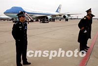 圖文:中國軍警在機(jī)場(chǎng)嚴(yán)密保衛(wèi)美“空軍一號(hào)” 2002年02月22日 18:45 ![]() 中國軍警二十二日在北京機(jī)場(chǎng)嚴(yán)密保衛(wèi)美國總統(tǒng)布什乘坐的空軍一號(hào)專機(jī)。中新社記者 賈國榮 攝