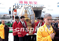 圖:法門寺佛指舍利抵達(dá)臺(tái)北機(jī)場(chǎng) 2002年02月23日 19:20 ![]() 法門寺佛指舍利二十三日下午抵達(dá)臺(tái)北機(jī)場(chǎng)。作者:中央社攝/中新社