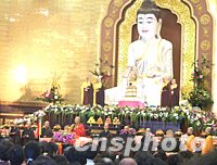 組圖:佛指舍利抵達臺灣高雄 數(shù)萬信眾瞻仰 2002年03月04日 20:13 ![]() 法門寺佛指舍利供奉在臺北縣三峽金光明寺時,吸引數(shù)萬信眾前往瞻仰,大雄寶殿前、廣場前都擠滿信眾,相當(dāng)壯觀。中央社攝/中新社發(fā)